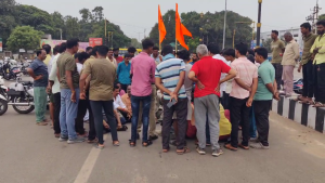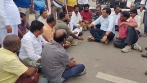 BALLARI: Members of the Valmiki community in Ballari staged a protest by blocking the road at Sangam Circle to condemn the removal of banners put up for Valmiki Jayanti.